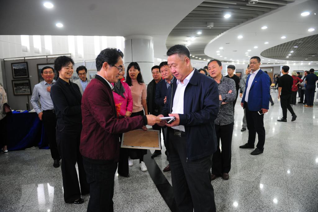市委宣传部副部长毕肃升向马振庆颁发“向人民汇报”个展荣誉证书