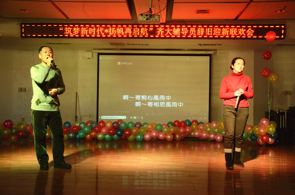 2018年12月28日下午,齐齐哈尔大学“筑梦新时代,扬帆再启航”辅导员辞旧迎新联欢会在东区音乐与舞蹈学院四楼排练厅举行。联欢会由学生工作部(学生处)主办,辅导员协会承办。副校长王刚出席联欢会,学生工作部(学生处)、校团委、招生就业处等职能部门工作人员,各学院主管学生工作领导以及全体辅导员参加了联欢会。联欢会由机电工程学院辅导员庞晓远、经济与管理学院辅导员王凤超、学生处少数民族学生专职辅导员哈尼巴提·恩提巴克、公寓辅导员安平主持。