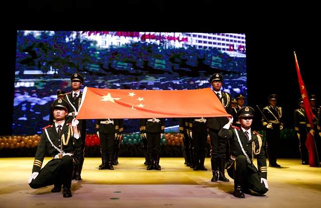 由我校外国留学生自编自导自演的歌伴舞充满着异域的风情,富有特色的西藏舞蹈、洁白的哈达等展示了雪域高原的神奇魅力,悠扬的萨克斯演奏让会场旋律涤荡,传统书法才艺表演赢得现场观众的阵阵掌声,激昂亢奋的重金属乐队释放极限活力……最后在美妙的音乐声中所有的演员登上了舞台进行谢幕仪式,也代表着汇演完美地落下了帷幕。最后,与会各位领导与全体演职人员合影留念。