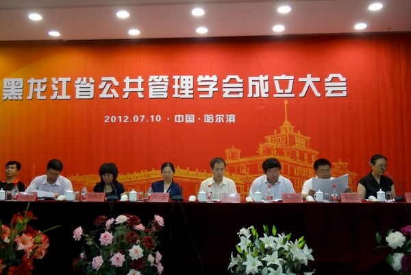 会议由黑龙江大学政府管理学院院长教军章主持。社科联副主席刘幸同志与黑龙江大学副校长何颖副校长共同为黑龙江省公共管理学会揭牌。会议通过了《黑龙江省公共管理学会章程(草案)》,选举产生了首届黑龙江省公共管理学会理事、常务理事、副会长、会长、秘书长、副秘书长。我校党委书记李海红同志当选为副会长,王维、王晓梅、何春歧、苗雨君当选为理事。