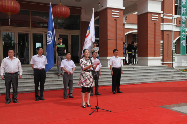 机关党委书记孟宪国、学生工作(部)处(部)处长黄伟中、校团委书记李秀梅在起跑点分别为参加接力活动校庆联络员和志愿者授校旗、60周年校庆旗和齐齐哈尔大学志愿者旗帜。