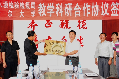 根据合作协议,我校在齐齐哈尔市出入境检验检疫局建立“齐齐哈尔大学教学实习基地”。马立群校长为该局授牌。