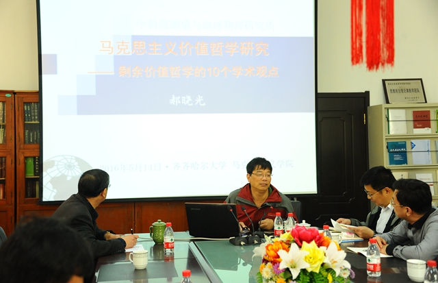 5月14日下午,郝晓光研究员在马克思主义学院会议室为马克思主义学院的教师和研究生作了题为《马克思主义价值哲学研究——剩余价值哲学的10个学术观点》的学术报告。