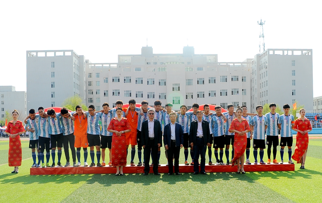 比赛正式开始前,与会校领导作为颁奖嘉宾,分别为此前举行的我校首届校园足球联赛前三名学院颁奖。