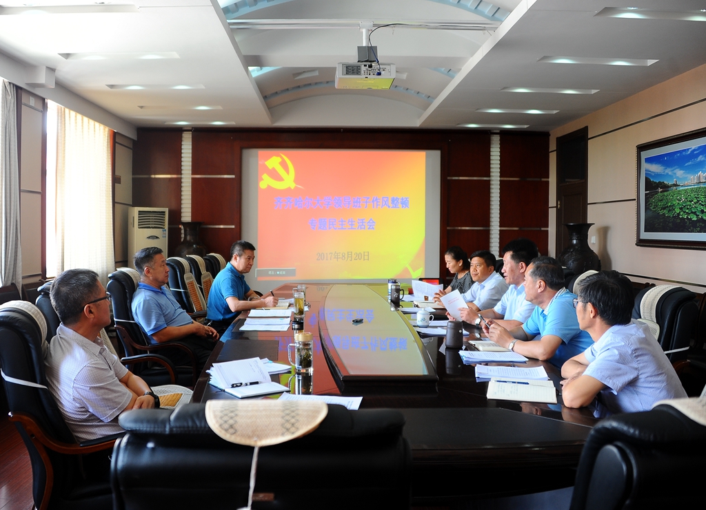 按照省委、省委高校工委关于全省高校作风整顿第二阶段工作的相关要求,根据《齐齐哈尔大学领导班子作风整顿专题民主生活会方案》的部署和安排,学校领导班子和班子成员紧扣“学习贯彻省十二次党代会精神,全面加强作风建设”会议主题,通过精心组织学习、广泛征求意见、普遍开展谈心、深入查找问题、认真撰写对照检查材料和党委书记与班子成员谈心谈话等会前各项准备工作,8月20日下午,齐齐哈尔大学领导班子作风整顿专题民主生活会在办公楼504会议室召开。学校领导班子成员兰景力、马立群、齐宏伟、郑喜群、王刚、李英杰、姜国庆、张树军参加会议。会议由校党委书记兰景力主持。