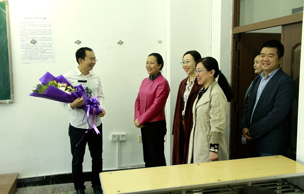 校党委副书记齐宏伟、副校长王刚、副校长李英杰、纪委书记姜国庆、副校长张树军、副校长吕厚均分别来到教室慰问了理学院张权、计算机与控制工程学院金涛、外国语学院张丽云、建筑与土木工程学院张学元、化学与化学工程学院苏立强、生命科学与农林学院范震宇等一线教师代表。