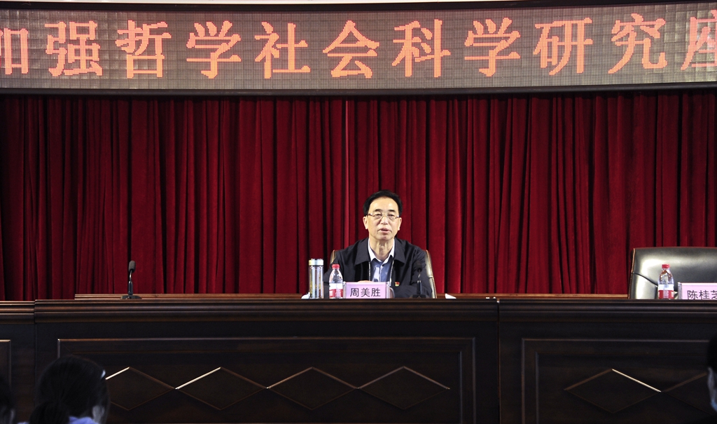 陈桂芝在讲话中代表学校对周美胜的到来表示热情欢迎,对省哲学社会科学工作办公室近年来对我校哲学社会科学研究工作的大力支持和帮助表示感谢,并希望省哲学社会科学工作办公室能够给予学校相关工作更多的帮助和支持,进一步助推学校在哲学社会科学研究方面再结硕果。
