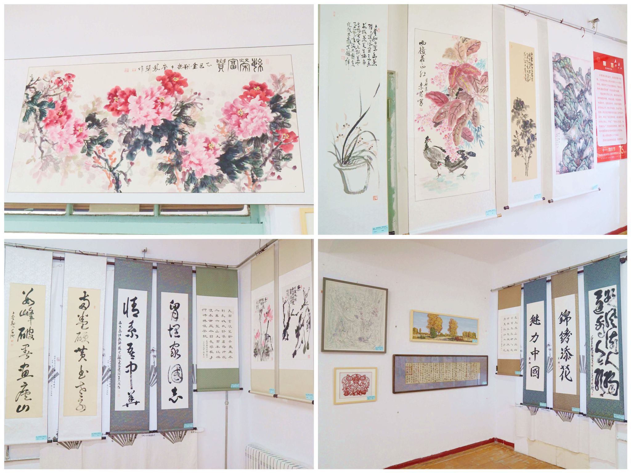 为庆祝中华人民共和国成立76周年,弘扬中华优秀传统文化,丰富离退休干部精神文化生活,离退休工作处党委于9月30日在离退休活动中心举办“银龄绘锦绣 墨韵颂华章”主题书画展。校党委书记丁宏、党委副书记张文治出席活动,党委常委、组织部部长孙大鹏,机关党委书记王权,部分师生及离退休老同志参观书画展。