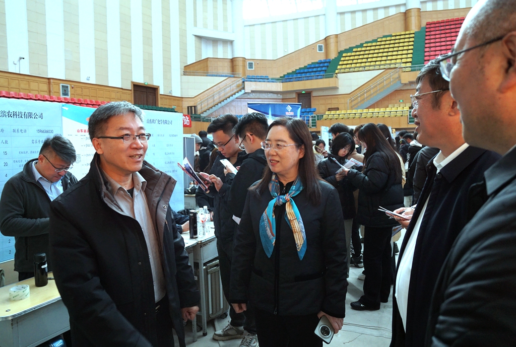 校党委书记丁宏、党委副书记张文治深入现场走访交流,与山东省淄博市、滨州市、聊城市人社局等政府职能部门负责人共商人才引育机制,向山鹰国际控股股份公司、哈药三精明水药业有限公司、泗阳桃州中学等用人单位代表详细了解招聘需求和学生的求职情况,并对学校下一步就业工作做出具体部署。