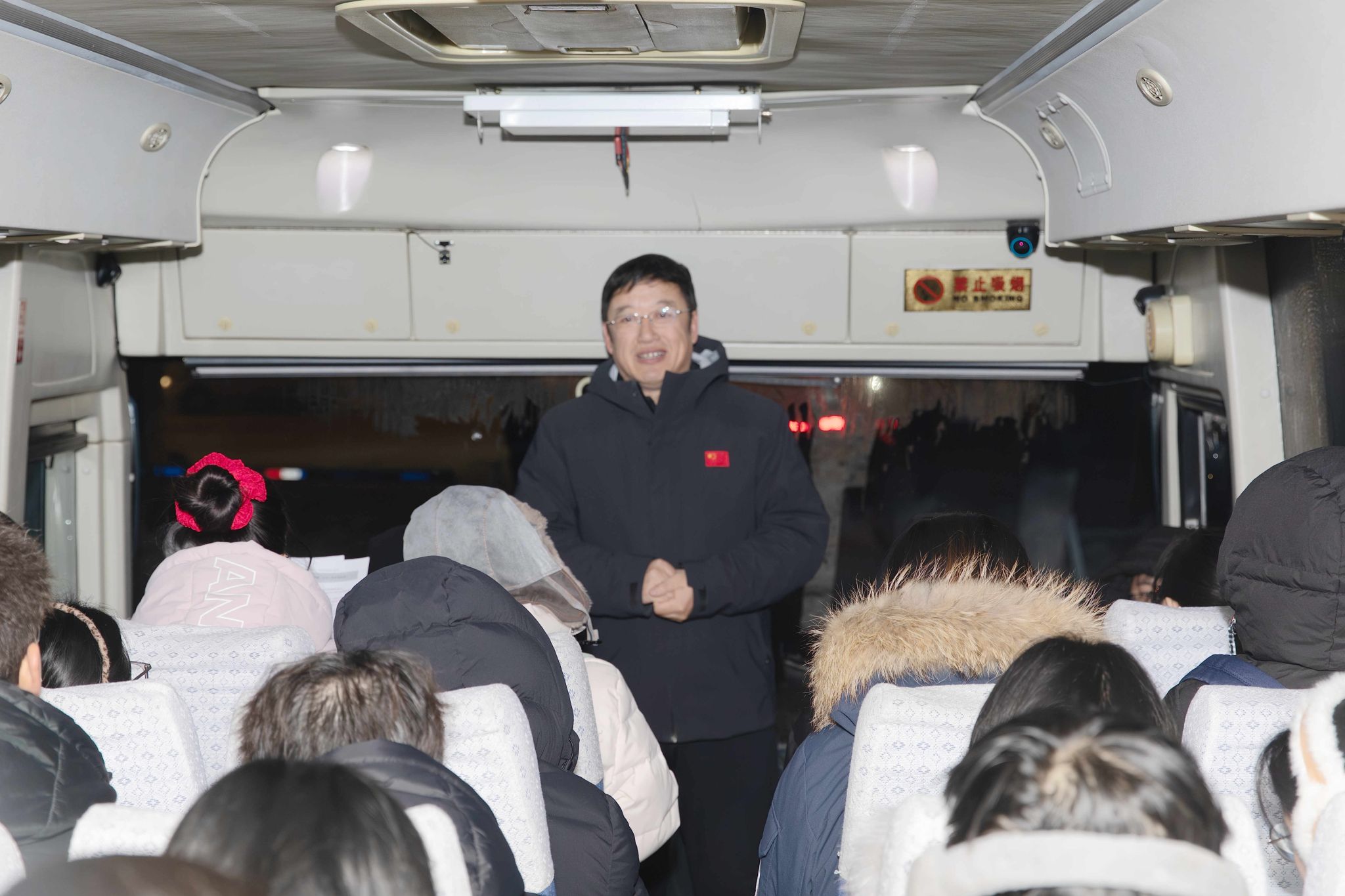 清晨六点半,天色未明,寒风凛冽,一辆辆承载暖意和爱意的大巴车整齐排列,等待着将考研学子安全送达考点。校领导们早早来到各集合点,走上大巴车送上温馨祝福,与考生们亲切交流,叮嘱大家放松心态、沉着应考,并亲手为考生送上寓意“甜蜜顺利”的糖果礼包,一句句真挚的祝福、一份份贴心的礼物,传递着学校对学子们如家人般的牵挂与支持。