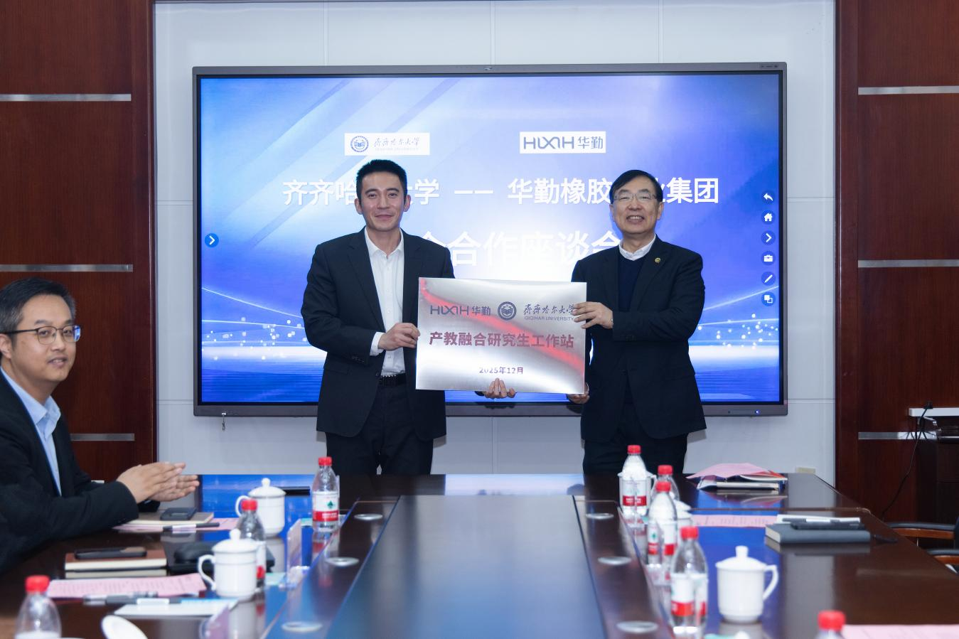 会上举行授牌与签约仪式。郝文斌向牛飞授予齐齐哈尔大学“产教融合研究生工作站”牌匾。王志刚与华勤集团下属通力轮胎有限公司代表共同签署了技术开发合同。双方围绕科研项目联合攻关、人才联合培养模式、成果转化落地等具体事宜进行了深入务实的讨论,明确了合作切入点与推进计划。