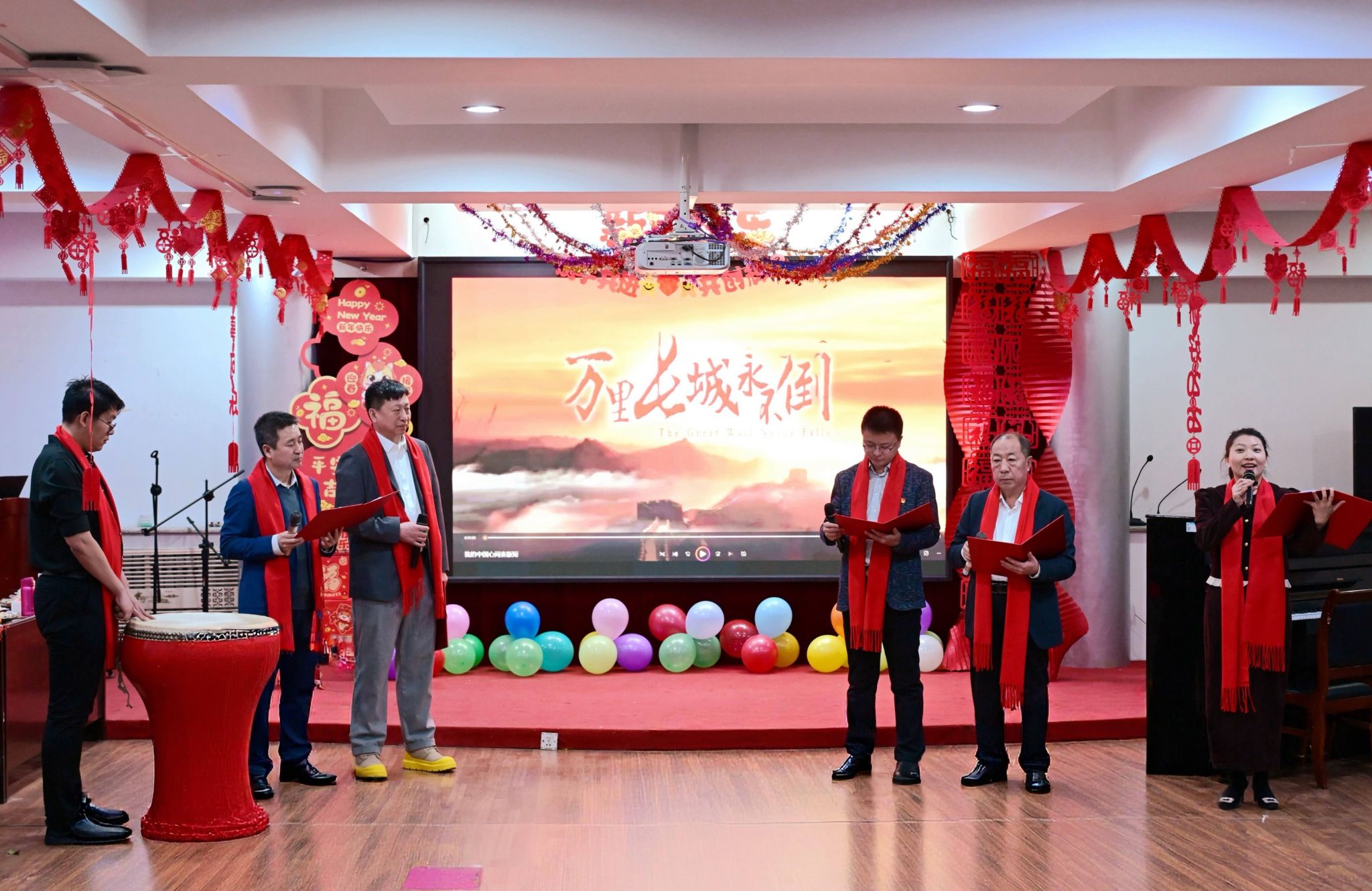 压轴环节,全体人员起立共同唱响《我和我的祖国》。嘹亮的歌声响彻全场,深情抒发了对祖国的赤诚热爱与无限忠诚,将联欢会的气氛推向最高潮。