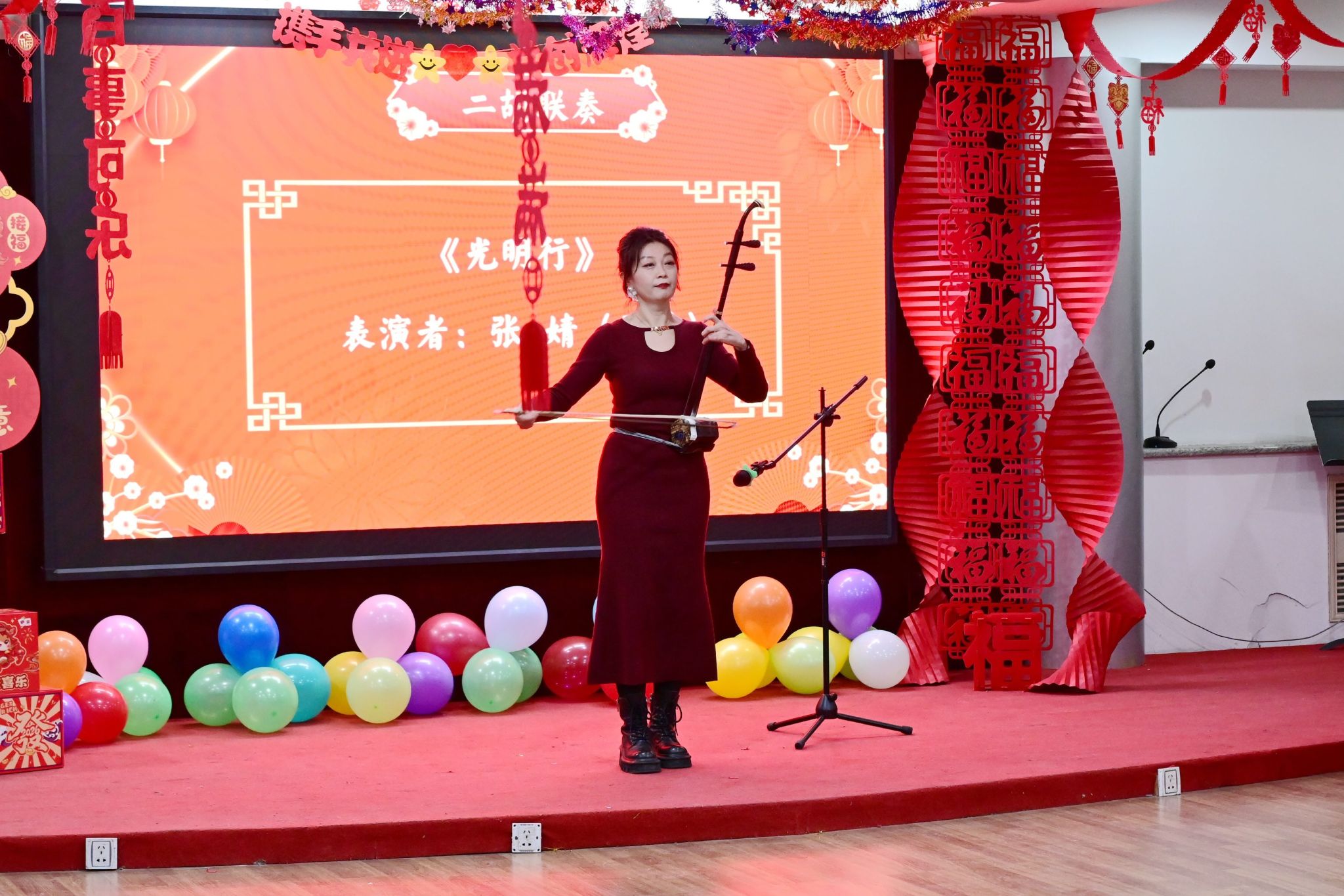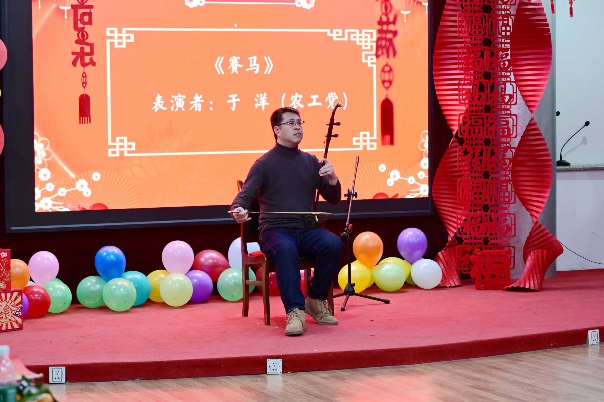 农工党成员于洋、民进成员张婧带来二胡连奏《赛马》《光明行》,明快的节奏、昂扬的气势,将民族乐器的独特韵味表现得淋漓尽致,展现了民族血脉中的奋进力量,极具感染力,让现场气氛愈发热烈。