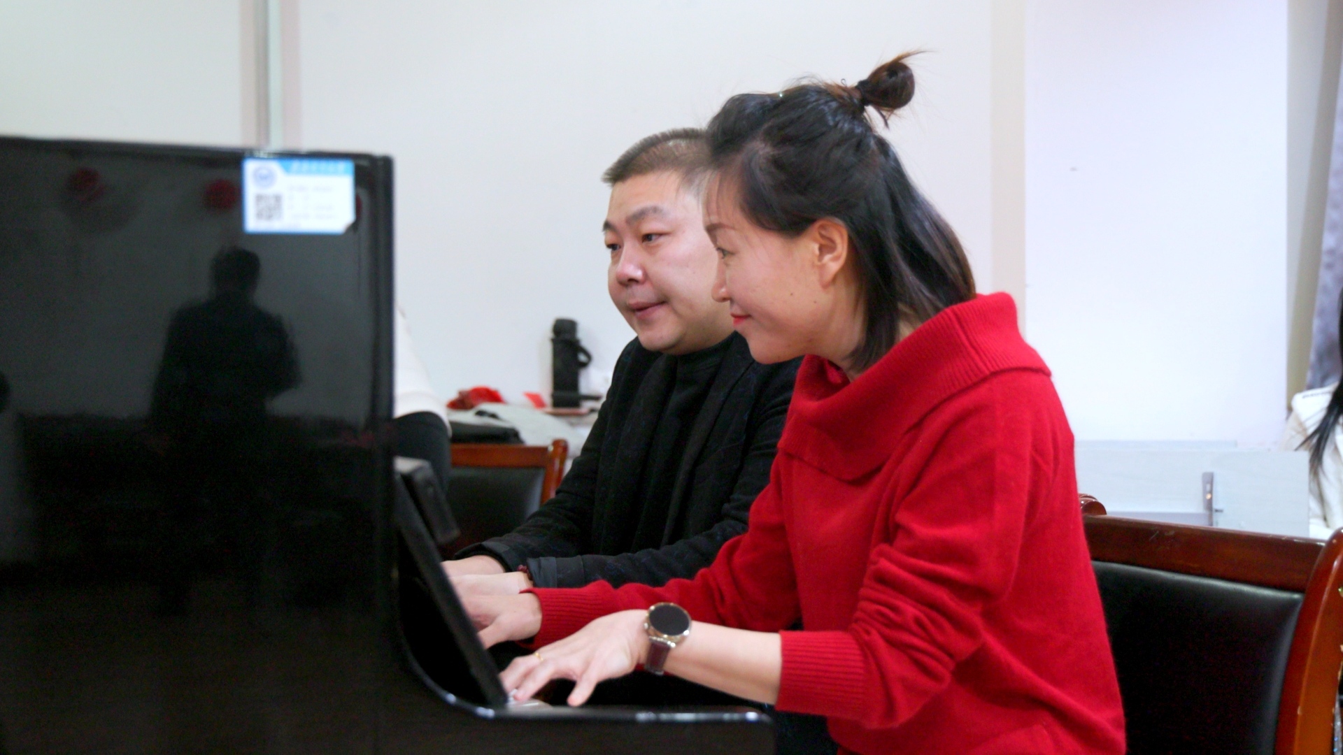 联欢会在四手连弹《春节序曲》中拉开帷幕。民盟成员郑妍与高知联白斌老师指尖灵动翻飞,欢快激昂的旋律奏响了节日的喜庆乐章,生动诠释了统战成员“同心共鸣、协作共进”的深厚情谊与精神风貌。