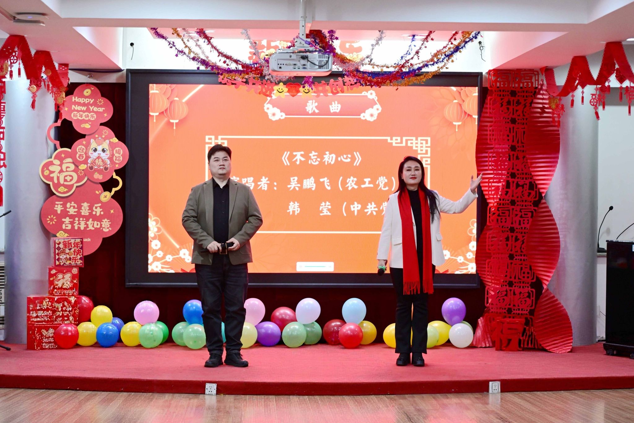 农工党成员吴鹏飞与中共党员韩莹合唱《不忘初心》,二人深情对唱,用歌声诠释初心使命、重温奋斗历程,激励在场每一位同志坚守信念、砥砺前行,为学校发展不懈奋斗。