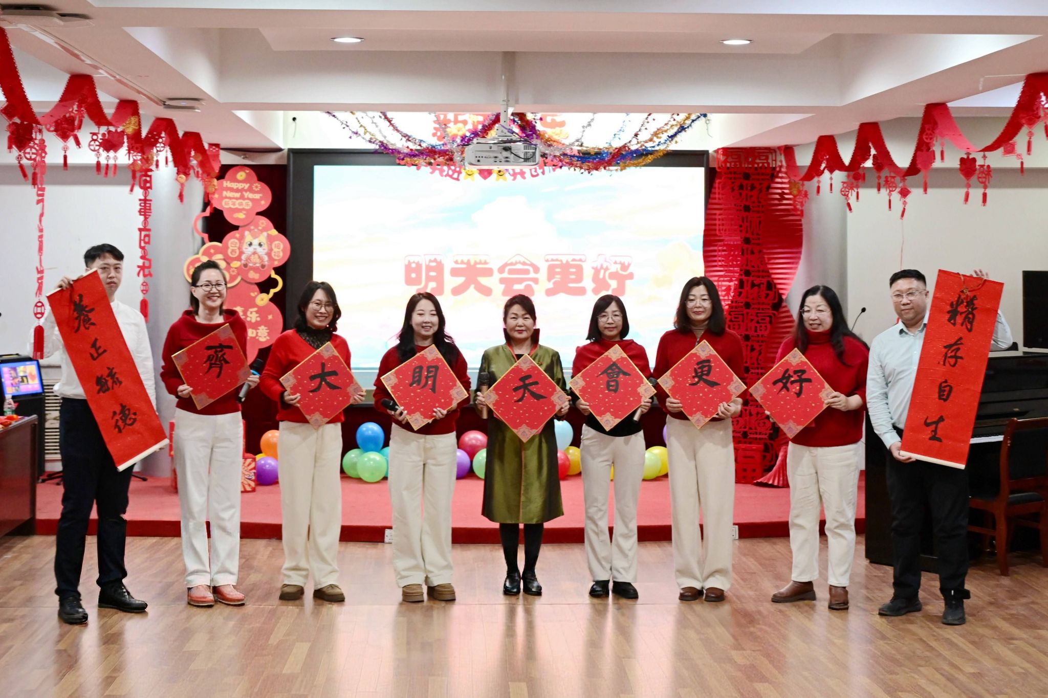 民盟郭晗等九位老师合唱《明天会更好》,温暖治愈的旋律、饱含期许的歌声,寄托了全体统战成员对学校事业蓬勃发展、统战工作再谱新篇的美好愿景,传递出满满的正能量。