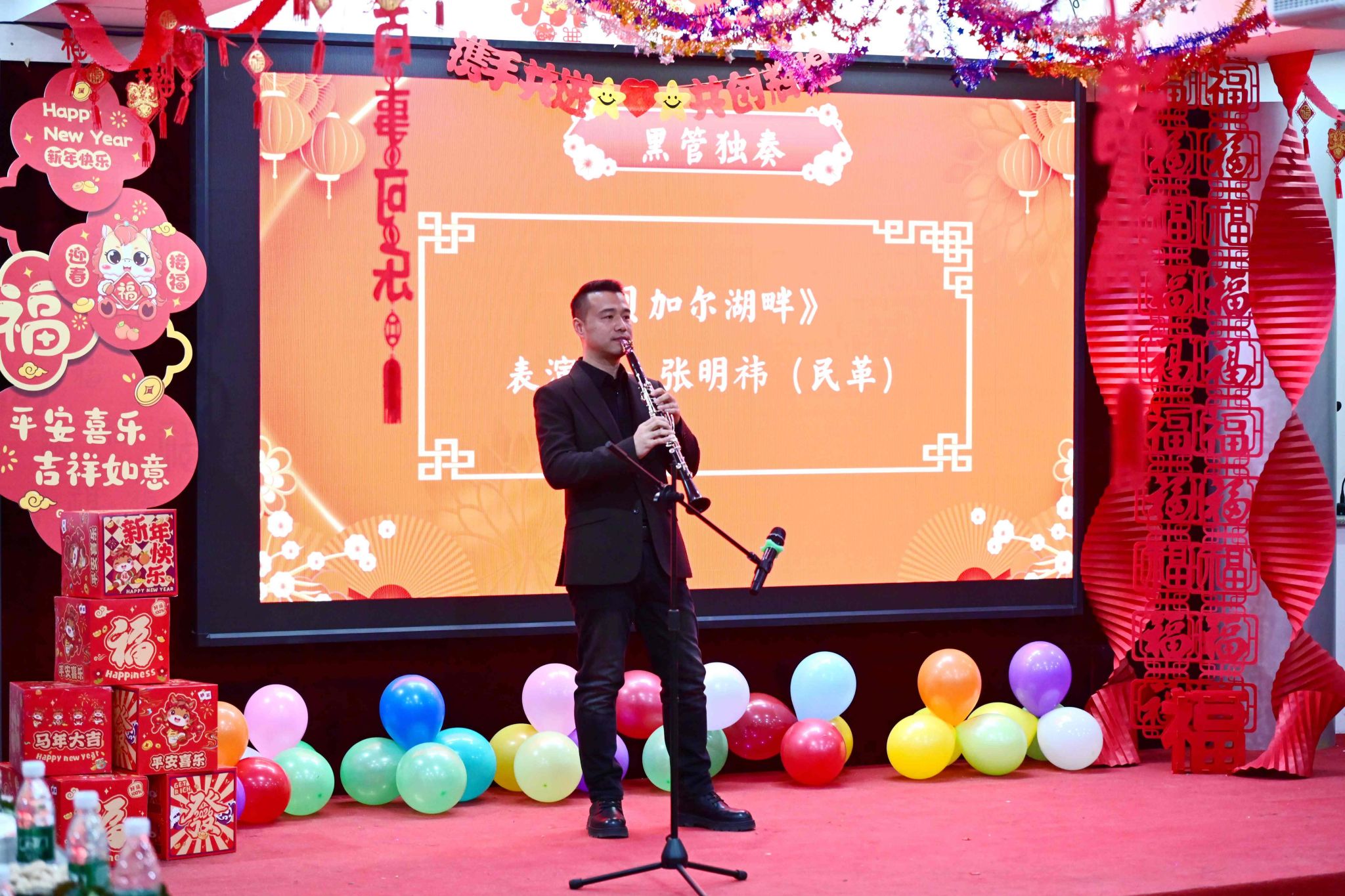 民革成员张明祎带来黑管独奏《贝加尔湖畔》,意境悠远的旋律绵长婉转,带领现场观众沉浸于如诗如画的音乐秘境,感受跨越边界的音乐之美与心灵震撼。