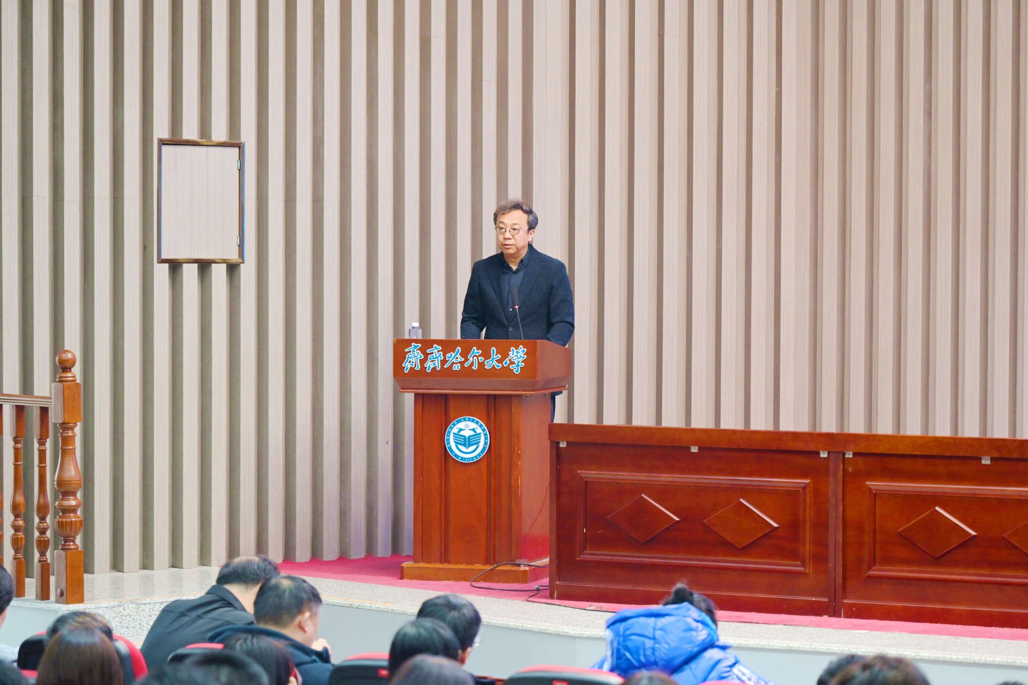 会议邀请本科教育教学审核评估专家佳木斯大学发展规划与高教研究中心主任张宏伟教授为我校本科教育教学审核评估整改工作作培训。张宏伟以《以评促改推动本科教学内涵发展》为题,从充分认识整改工作的重大意义、准确把握整改工作的核心原则、系统把握整改工作的实施路径、分层分类抓好落实、警惕常见误区、前瞻思考-将整改与“十五五”规划有机衔接等六个方面,对怎样扎实做好本科教育教学审核评估整改工作任务落实做了详尽指导。培训内容立足实操,厘清了评估整改的“最后一公里”,有效打通了从宏观政策理解到微观操作落地的障碍,具有重要的借鉴意义和推动作用。