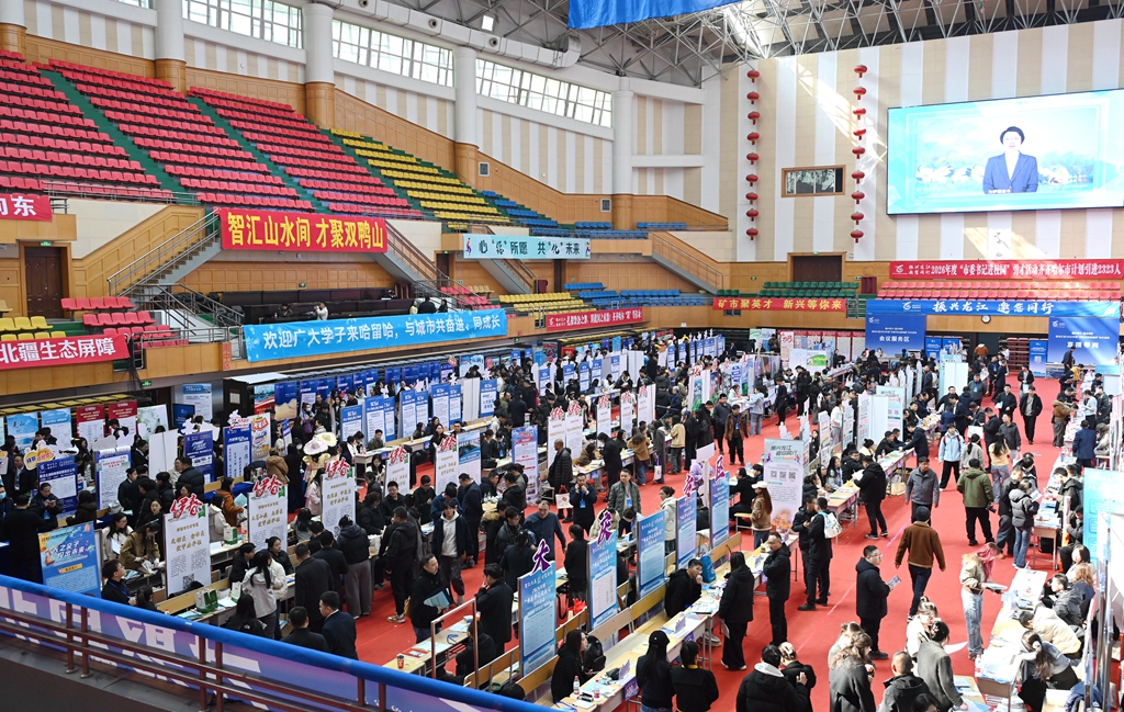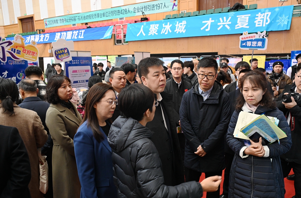 3月22日上午,由省委组织部、省教育厅和省人力资源与社会保障厅主办的黑龙江省2026年度“市委书记进校园”引才活动(齐齐哈尔大学站)在我校西校区体育馆举办,为毕业生提供了省内各地市万余个岗位。省委组织部人才工作二处副处长王欣雷,齐齐哈尔市委常委、组织部部长毕金辉,学校党委书记丁宏及全体在齐校领导,相关职能部门负责同志,各学院领导班子成员,毕业班辅导员,专任教师,2026届毕业生参加活动。