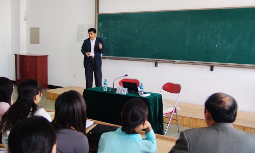 在人文楼(25教)404阶梯教室,傅道彬教授为人文学院师生作了题为《< 周易>与中国文化的诗性品格》的学术报告。人文学院院长王则远主持了报告会,该学院领导、系主任、专业带头人、部分教师、研究生、本科生200余人聆听了报告。