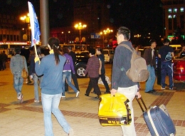 在火车站迎新接待点,我校工作人员按照学校的统一要求和部署,及时为刚刚走下火车的新生及家长提供周到而细致的服务。他们有的举着写有各院系标志的牌子为新生及家长引路;有的为新生提供细致的咨询,有的帮他们拿东西,有的为远道而来的学生家长排忧解难,停放在广场上的接送班车,为一路旅途奔波劳累的新生和家长提供免费服务,将他们顺利送达学校。