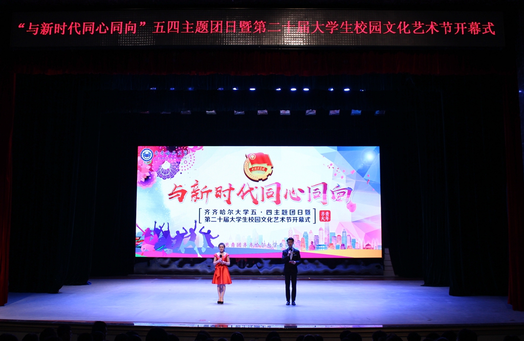 校党委副书记齐宏伟在致辞中代表学校党委向全校团员青年致以节日的问候!她希望同学们志存高远,坚定理想信念,坚持不懈地用习近平新时代中国特色社会主义思想武装头脑,切实做到把个人命运同党和国家的命运紧密结合起来,在投身中国梦的生动实践中施展才华,实现价值;希望同学们勤于学习,提升能力才干,把学习和参与实践结合起来,做到学以致用、用以促学、学用相长,真正成为推动社会主义现代化新龙江建设发展的有用人才;希望同学们挥洒个性,提高综合素养,积极参加校园文化艺术节有关活动,展示昂扬向上的精神风貌和全面发展的青春风采,以实际行动助推学校校园文化建设蓬勃发展。