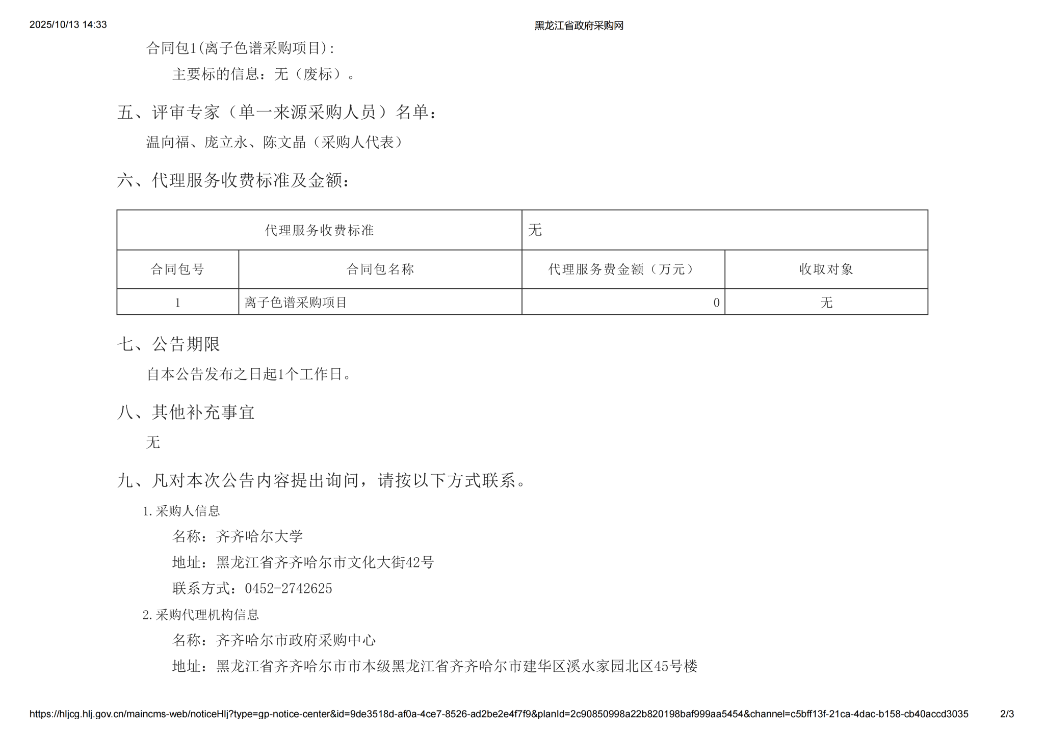 上一条:齐齐哈尔大学2025年校园路灯安装项目(第2次)结果公告(转自黑龙江省政府采购网)