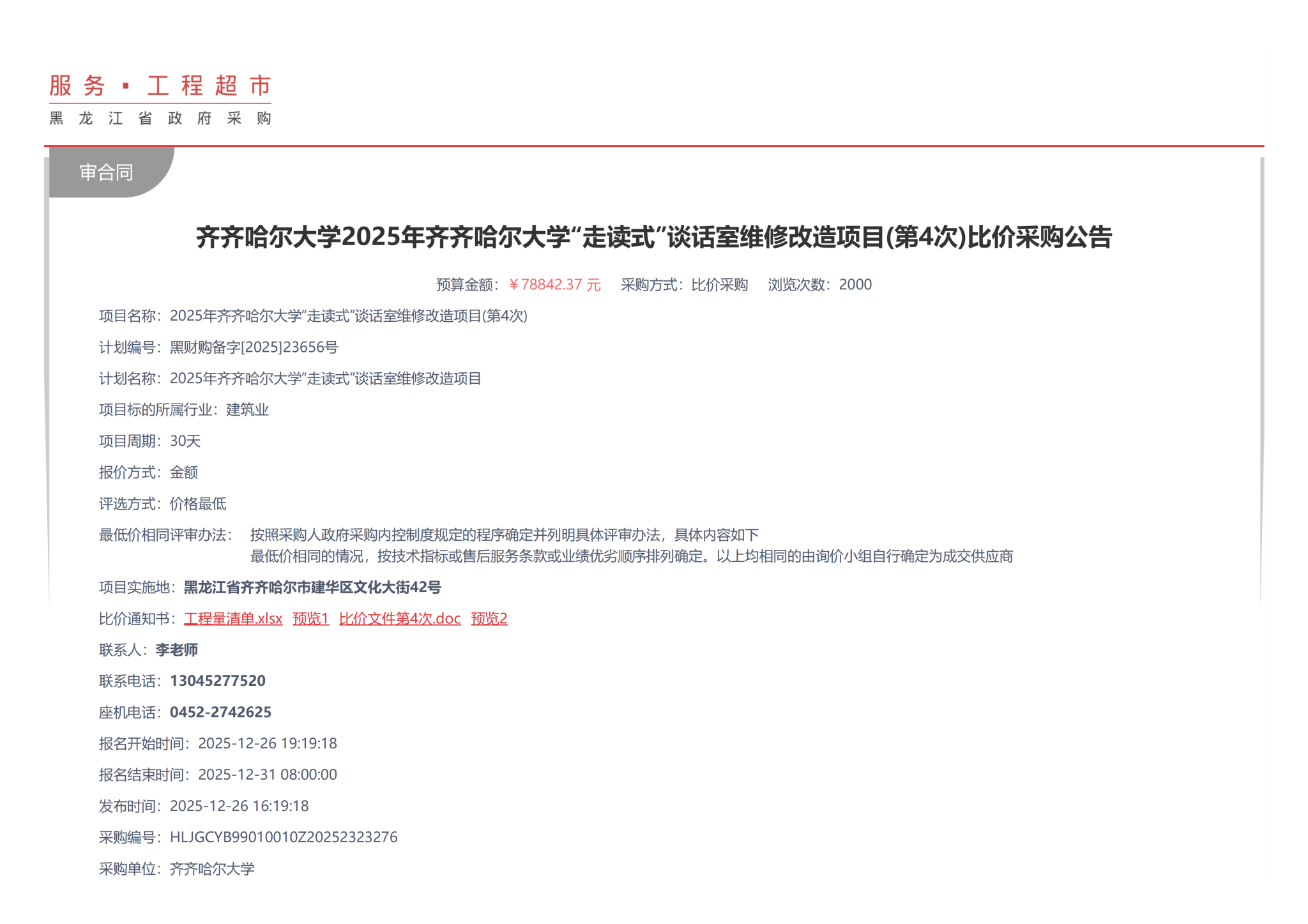 上一条:齐齐哈尔大学消防历史遗留项目设计服务采购-竞争性谈判公告(转自中国招标投标公共服务平台)