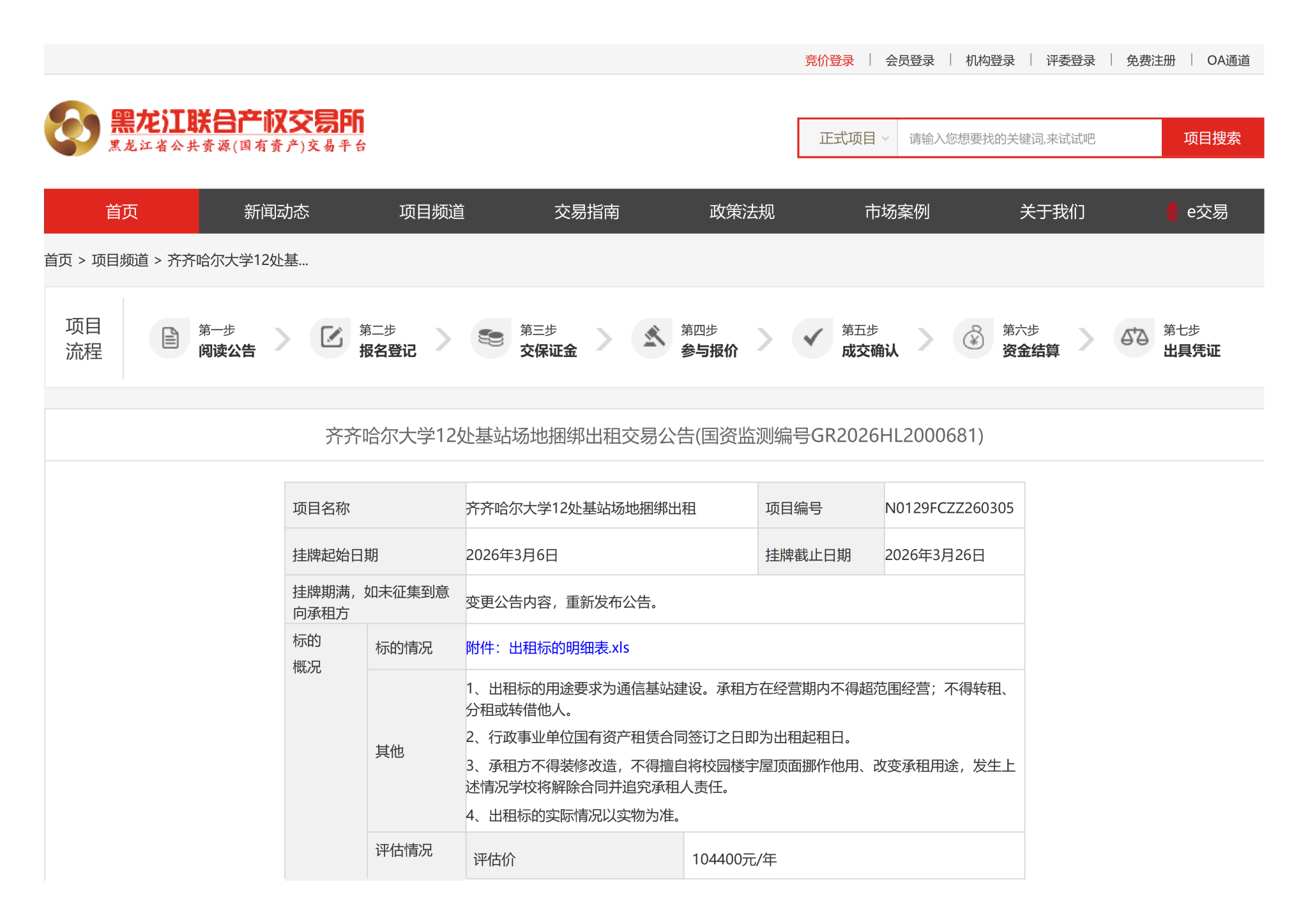 齐齐哈尔大学12处基站场地捆绑出租交易公告(国资监测编号GR2026HL2000681)(转自黑龙江联合产权交易所)