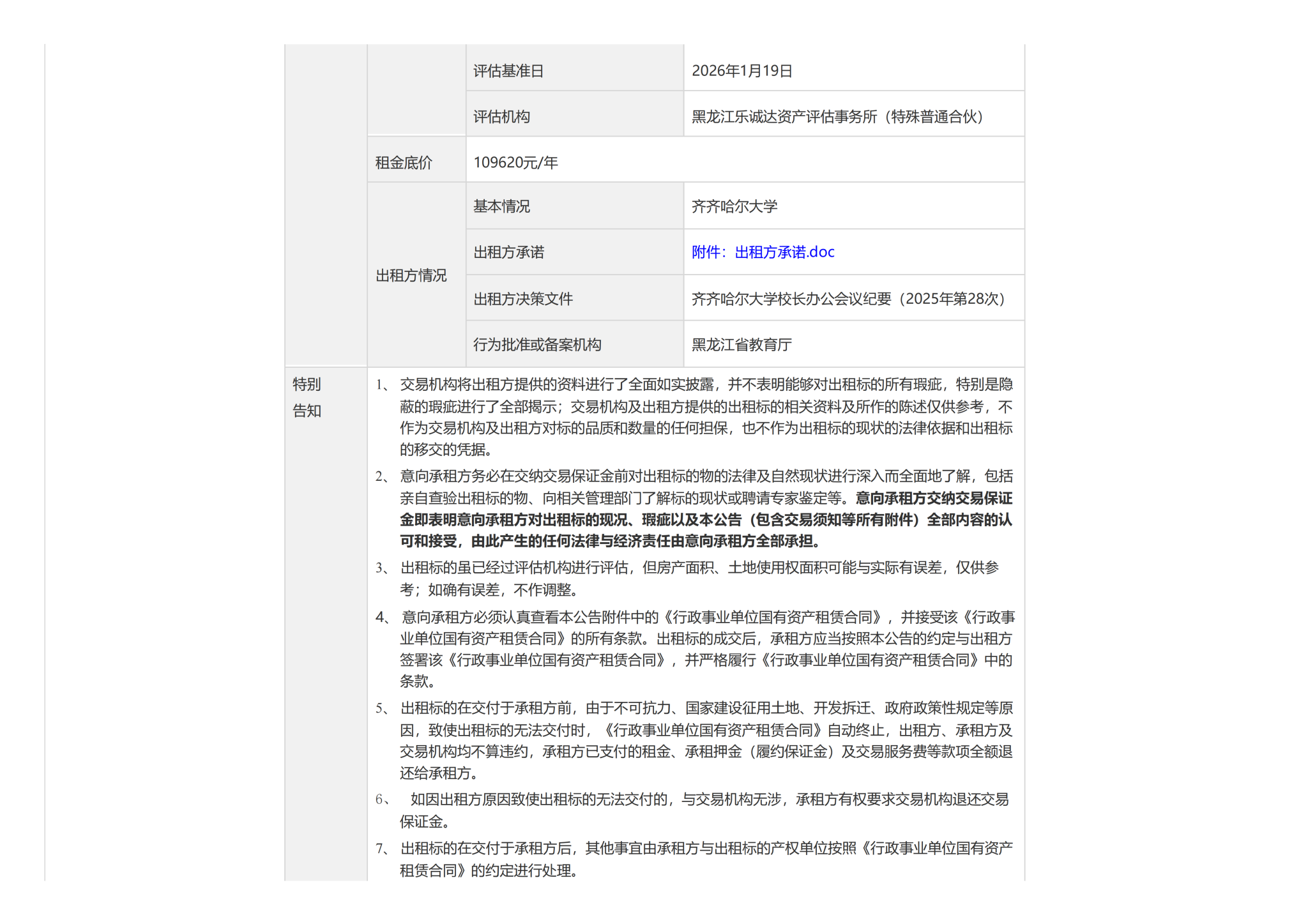 齐齐哈尔大学3处商服分别出租交易公告(转自黑龙江联合产权交易所)