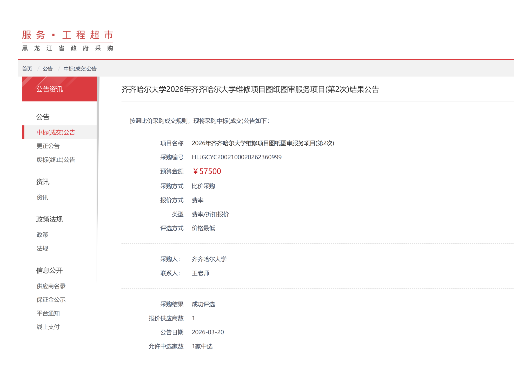 下一条:2026年齐齐哈尔大学维修项目工程监理服务更正公告(转自中国招标投标公共服务平台)