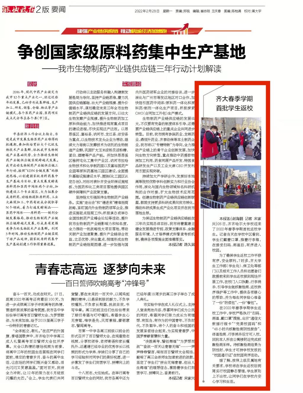 【齐齐哈尔日报】齐齐哈尔大学春季学期首批学生返校