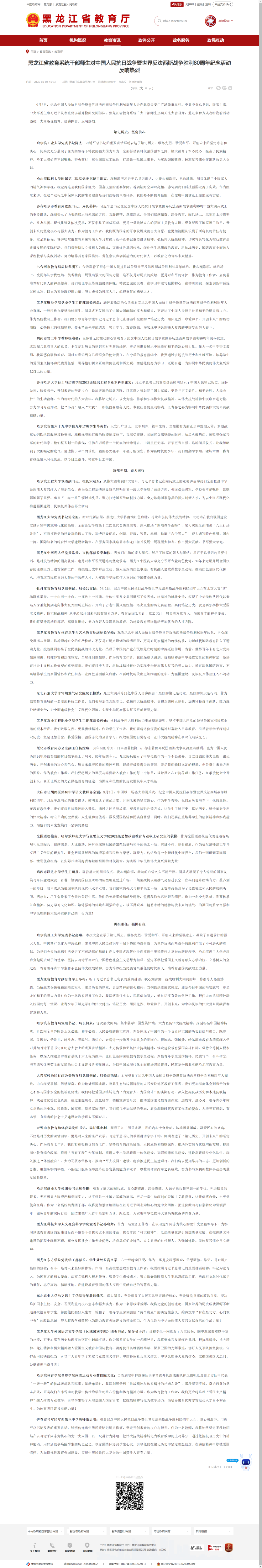 【黑龙江省教育厅】黑龙江省教育系统干部师生对中国人民抗日战争暨世界反法西斯战争胜利80周年纪念活动反响热烈